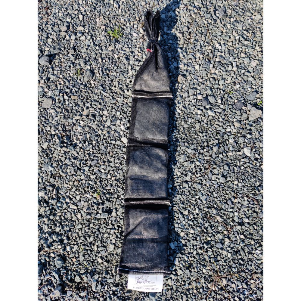 Placed in water flow where turbidity, heavy metals, or hydrocarbons exist to accelerate particle deposition (i.e. sediment ponds, swales, pumped water). Use these Tiger floc Flocculant Belts/Socks in the same method you would use a Chitosan Sock, and get better results! Contact Us